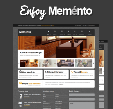 We included 6 great sliders that you can use in all the pages of the theme. The nivo slider (a simple fade effect slider), the thumbnails slider (is the Mèmento slider we are using in the first home page of the theme), the nice Flash Slider, the great responsive and full width Elastic Slider and the Elegant slider.